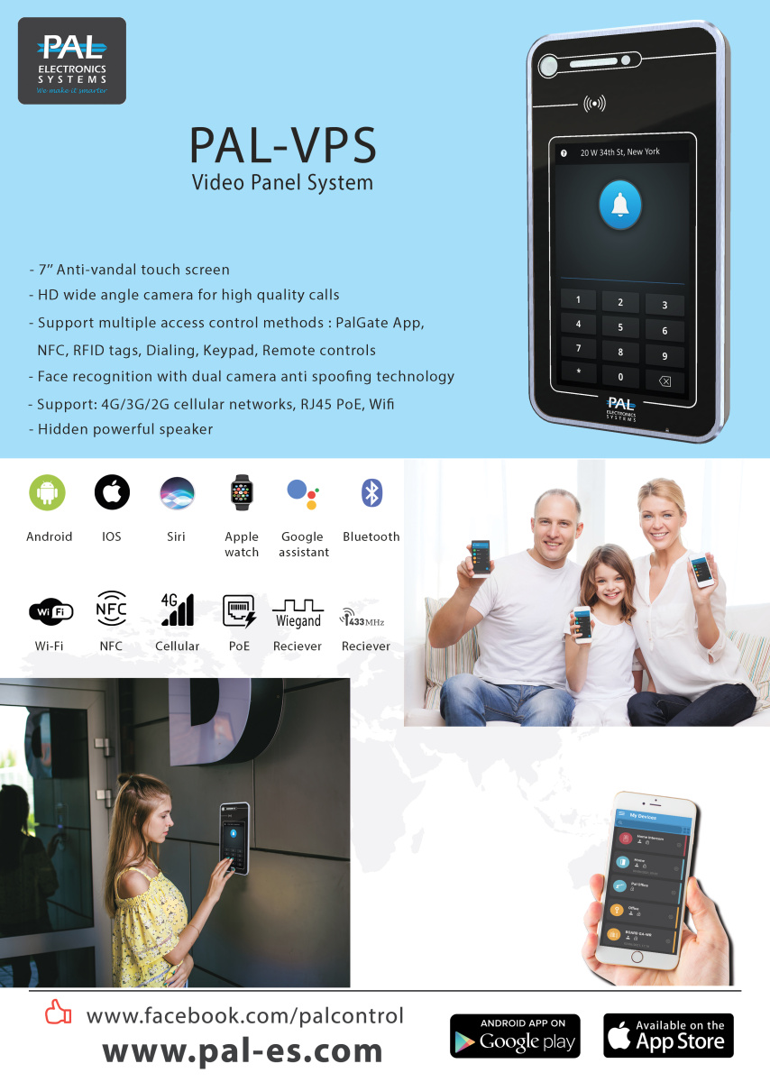 Видеодомофон для работы с мобильными устройствами, любое количество абонентов. Управляет одной или двумя дверями. Низкая стоимость монтажа. Удобное управление системой. Доступ по распознаванию лиц, по приложению, по меткам или коду.